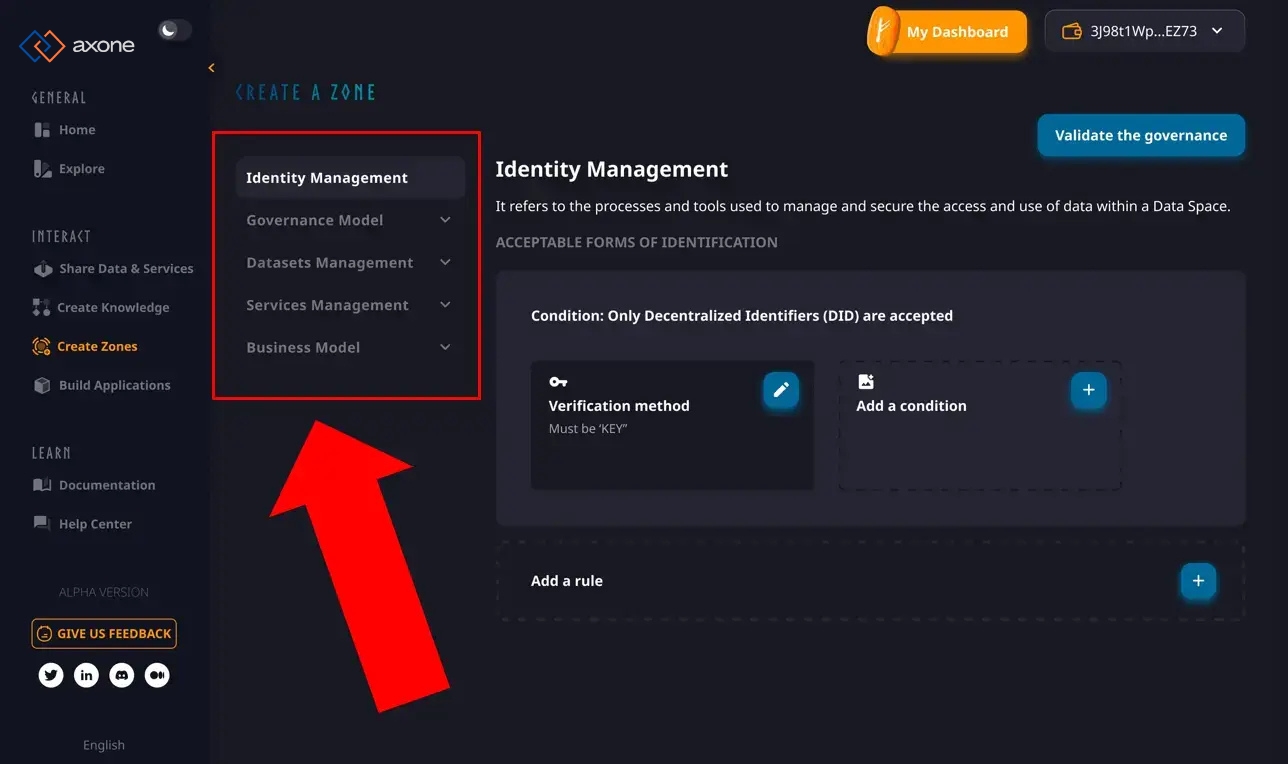Identity Management: This refers to the various authentication methods used to manage access to the zone. It can range from key-based systems Self-Sovereign Identity (SSI) services like Cheqd to more conventional Single Sign-On (SSO) methods like Sign-in with Google. The choice may depend on the desired contributor engagement type or the disclosed information's granularity.